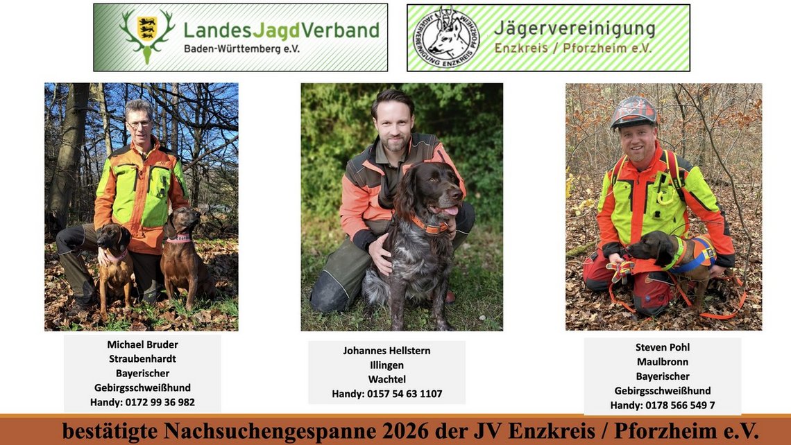 - Nachsucheführer der KJV Enzkreis/Pforzheim sind in einer Gruppe organisiert.